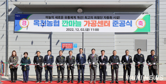 옥천농협은 최근 북일면 금당리에 깐마늘 가공센터를 준공했다. 농림축산식품부 국비 공모사업인 식품소재 및 반가공산업 육성사업을 통해 국비 2억 3500만 원을 포함 총 7억 8300만 원의 사업비를 투입해 655㎡ 규모의 가공센터를 준공했다.