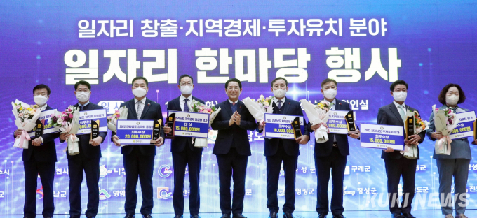 행사에서는 또 지역 일자리 창출을 위해 노력한 일자리 우수기업에 인증서 수여, 일자리‧지역경제‧투자유치 등 분야별 우수 시군과 유공자에게 표창을 수여식이 진행됐다.