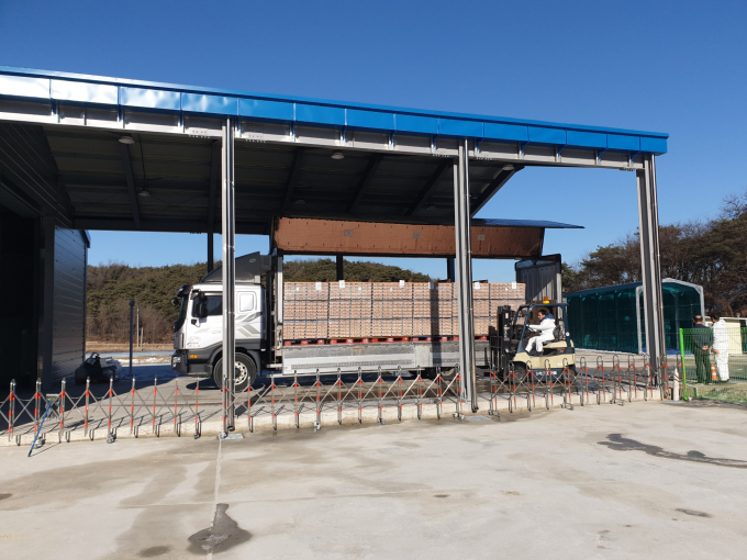 군은 지난해 12월 고병원성 조류인플루엔자(AI) 차단방역을 위해 계란환적장을 준공했다.