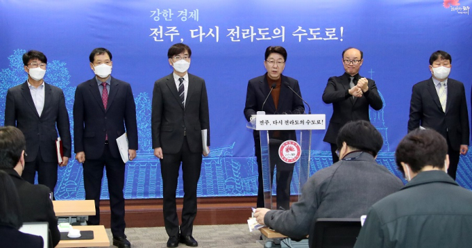 우범기 시장은 9일 시청 4층 회의실에서신년 기자회견을 열고 △미래광역도시 대전환(도시) △혁신 성장 강한 경제(경제) △글로벌 으뜸 문화산업(문화) △일상 속 신바람 복지(복지)의 4대 분야, 16대 전략을 제시했다.
