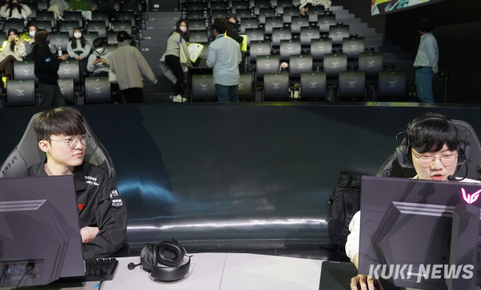 긴 침묵을 깨고, 김정현(21)이 불쑥 이상혁에게 말을 건넸다. “형, 1대 1 하실래요?” 이상혁이 이에 응하자 김정현은 “말을 편하게 놓으셔도 된다”고 말했다. 이상혁은 조금 쑥스러운 듯 “저는 존댓말이 편해서…”라며 말끝을 흐렸다.