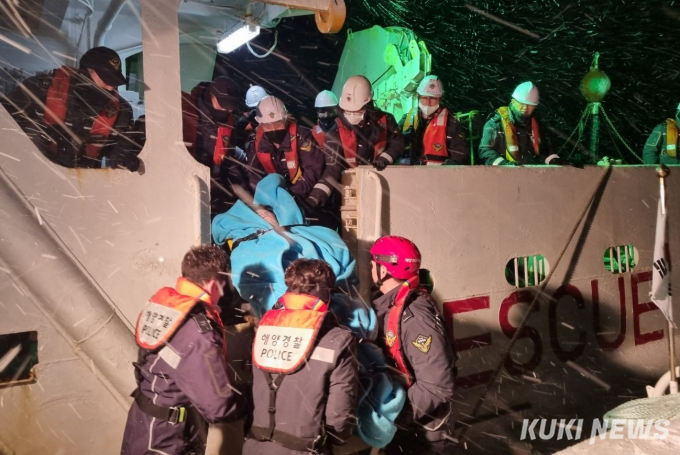 해경은 해상에 폭설이 쏟아지는 가운데 초속 16~18미터의 강한 바람과 3미터의 높은 파도를 뚫고 현장으로 이동, A씨와 보호자를 진도군 서망항으로 이송해 28일 오전 6시 43분경 119구급대에 인계했다.