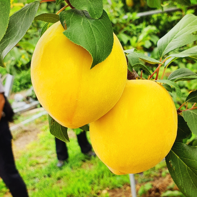 ‘플럼코트’는 플럼(자두)과 애프리코트(살구)의 합성어로 자두와 살구를 교배한 과일이다. 농촌진흥청에서 하모니, 티파니, 심포니 등의 품종을 개발해 국내에서는 2012년부터 보급되기 시작했다.