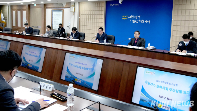 전남도는 8일 도청 서재필실에서 온실가스 감축사업 추진상황 보고회를 개최하고 지난해 온실가스 감축 실적 점검과 2023년 감축사업 계획을 공유했다.