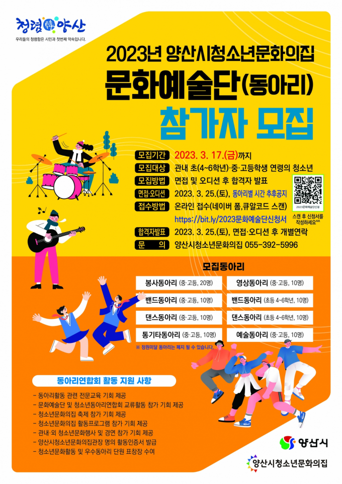 ◆양산시청소년문화의집 '청소년문화예술단' 참가자 모집