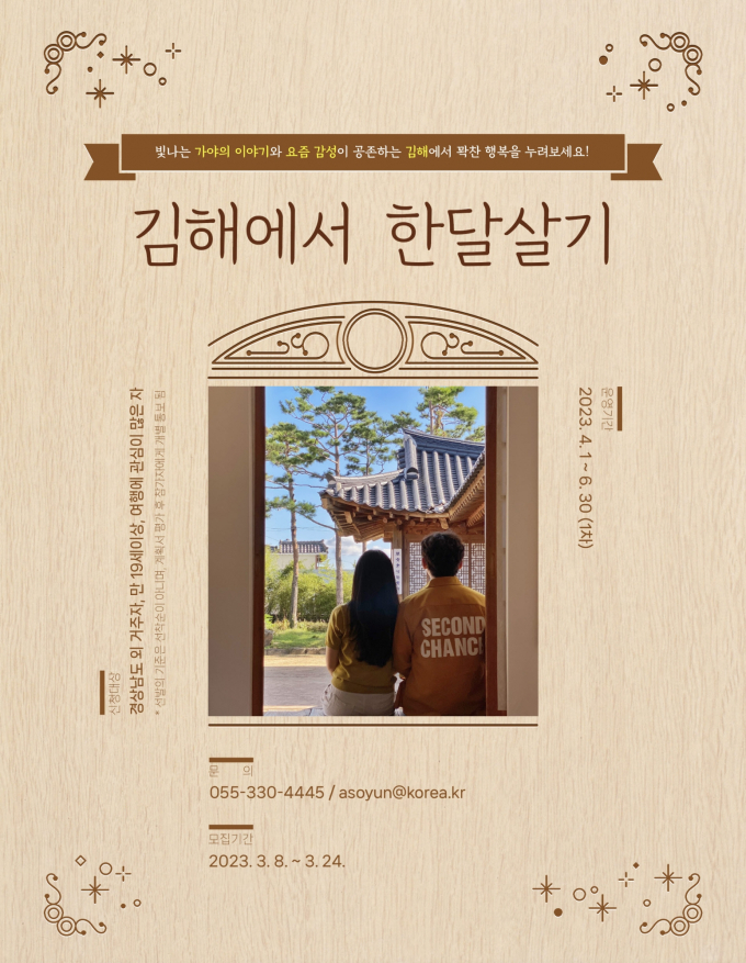 시는 갈수록 생활형 지역관광이 새로운 여행 트렌드로 부상하고 있는 점을 고려해 장기 체류형 여행 지원사업을 추진할 계획이다. 자세한 사항은 김해시 누리집 공지사항이나 김해관광포털 공지사항에서 확인하면 된다.