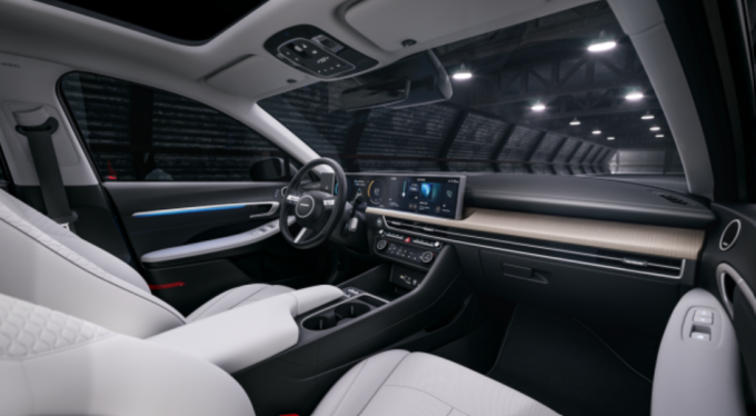 실내에는 디지털 클러스터와 인포테인먼트 시스템으로 구성된 디스플레이가 곡선의 형태로 연결된 파노라믹 커브드 디스플레이가 최초로 탑재됐다.