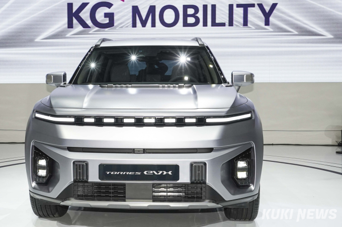 이어 KG모빌리티가 선보인 것은 ‘토레스 EVX’다. 토레스 EVX는 세상에 없던 정통 SUV 토레스 플랫폼을 활용해 구조적 강인함에 EV 감성을 더해 새롭게 탄생한 KG 모빌리티의 첫 번째 전동화 모델로 디자인 철학인 ‘Powered by Toughness’를 바탕으로 미래 지향적인 스타일과 오프로드 콘셉트를 결합했다.