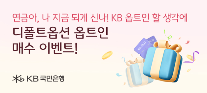 KB국민은행은 오는 7월 말까지 디폴트옵션 옵트인(직접 운용) 고객 대상‘연금아, 나 지금 되게 신나! KB옵트인 할 생각에’이벤트를 실시한다고 밝혔다.
