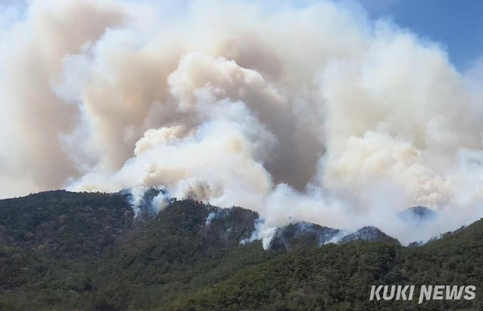 산림청은 산불의 규모와 현장에 순간 풍속 최대 11m/s의 바람이 불고 있는 등의 상황을 고려, 신속한 진화를 위해 오후 3시 10분을 기준으로 산불 2단계를 발령했다.