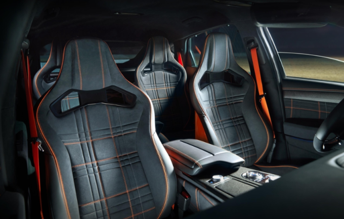 실내는 격자무늬 2중 스티칭과 오렌지색 테두리 등을 적용한 3스포크 스티어링 휠로 날렵함을 부각했다. 4개의 버킷 시트는 코너링에서 신체 지지력을 높여 안전과 편안함을 제공한다.