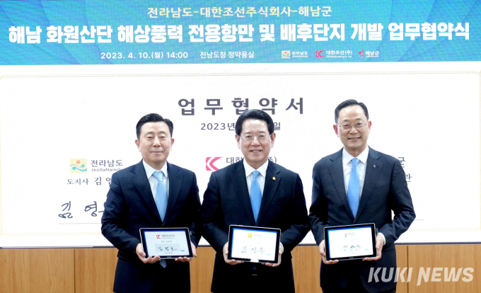 전남도와 해남군, 대한조선주식회사는 10일 전남도청 정약용실에서 ‘해남 화원산단 개발 협력 업무협약’을 체결했다.