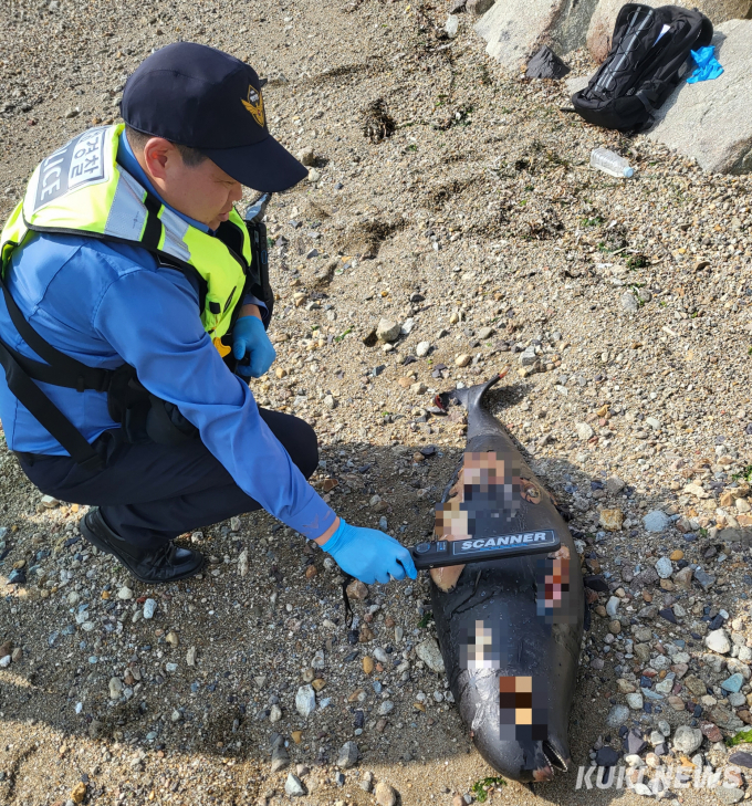 목포해양경찰은 지난 19일 오후 3시 04분경 상괭이 사체로 추정되는 물체가 있다는 신고를 접수했다.