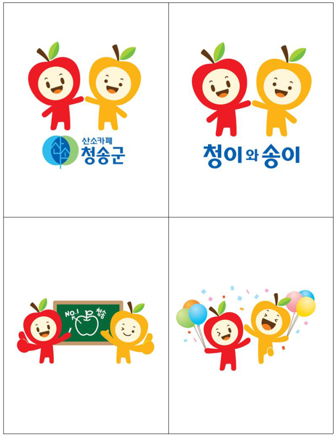 특히 캐릭터가 단순하고 기억하기 쉽다. 청송사과가 생각나고 캐릭터 명에서도 바로 지역이 연상되는 특징을 가졌다.