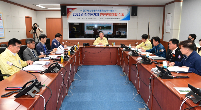 경남 진주시는 26일 시청 재난안전상황실에서 오는 5월5일부터 8일까지 4일간 개최되는 '2023년 진주논개제'를 앞두고 '안전관리 실무위원회(위원장 신종우 진주시 부시장)'를 개최했다.