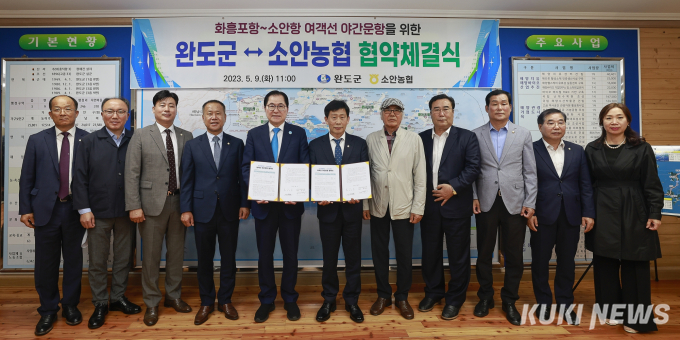 완도군과 소안농협은 9일 완도(화흥포)↔소안(소안항) 여객선 야간운항 협약을 체결했다.