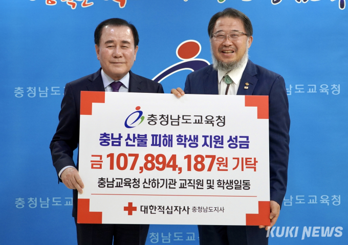 충남교육청은 10일 충남 산불 피해 학생 성금 모금액 약 1억 7백만원을 대한적십자사에 기탁했다고 밝혔다.