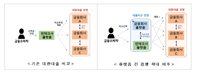 대환 대출 인프라가 개시되면 대출 갈아타기 플랫폼을 통해 대출을 영업점 방문 없이 낮은 금리로 옮겨갈 수 있게 된다. 금융회사들은 자체 경영전략, 플랫폼의 경쟁력 등을 고려하여 제휴 플랫폼을 선택하고, 이들 플랫폼을 통해 소비자들에게 신규 대출상품을 제시할 예정이다. 현재 53개 금융회사가 참여의사를 밝혔다.
