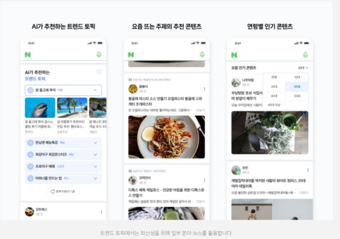 트렌드 토픽은 인공지능(AI)이 네이버 전체 사용자의 검색·문서 클릭 이력 등을 바탕으로 콘텐츠를 추천하는 구조다. 최신성을 위해 일부 분야 뉴스도 활용될 방침이었다.