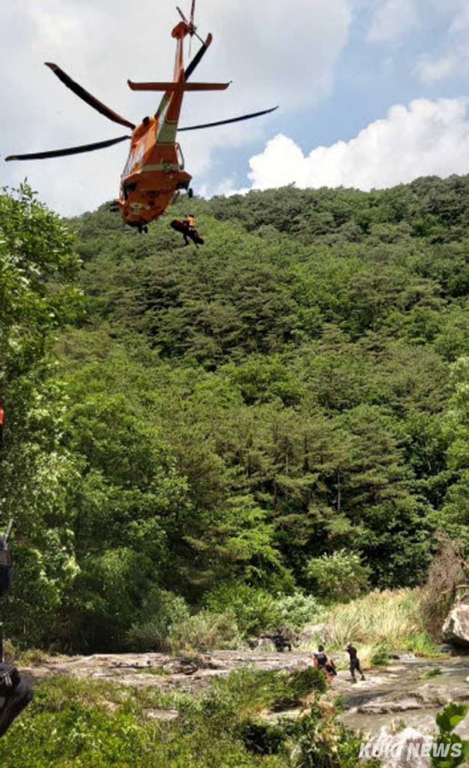 A씨는 신고를 받고 출동한 구조대에 의해 2시간여 만에 구조돼 헬기로 병원으로 이송됐다.