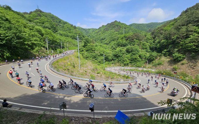 20일 강원 인제군 일원에서 열린 2023 설악 그란폰도 대회에 참가한 참가한 마니아들이 힘찬 라이딩을 펼치고 있다.