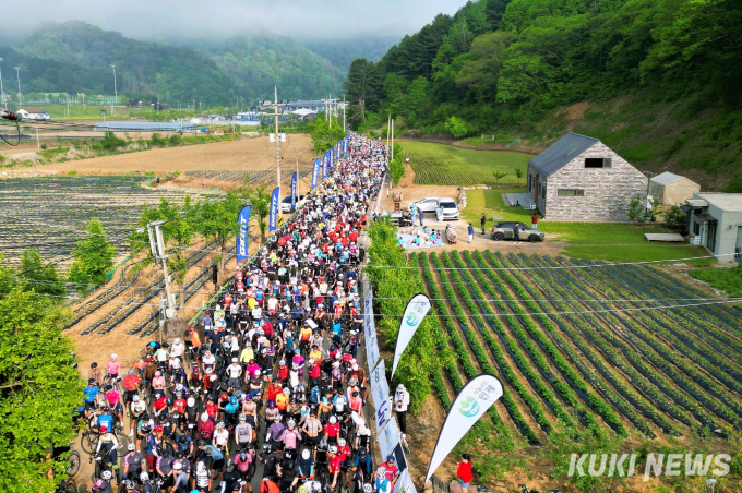 20일 강원 인제군 일원에서 열린 2023 설악 그란폰도 대회에 참가한 참가한 마니아들이 힘찬 라이딩을 펼치고 있다.