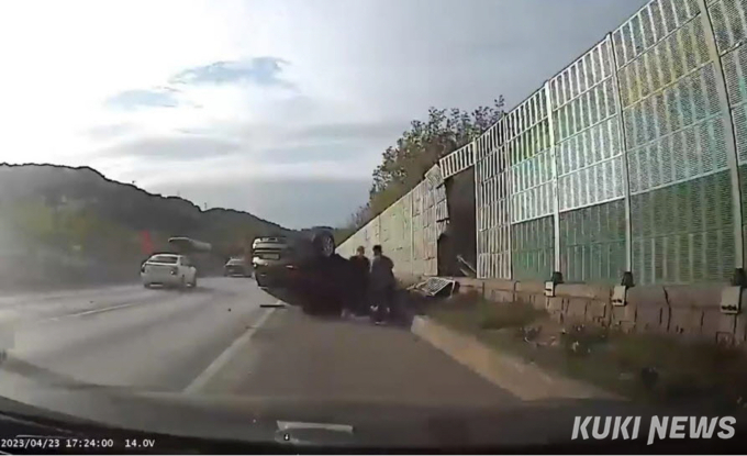 고속도로 위에서 차량 두 대가 주행 중 충돌하며 전복되었고, 사고 차량 바로 뒤에서 운행 중이던 두 간부는 돌발상황임에도 불구하고 즉시 정차하며 피해차량으로 향했다.