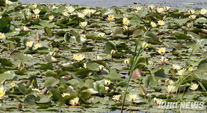 지난 25일 강원 화천군 하남면 건넌들 수생식물 생태공원에 수련이 만개해 있다.