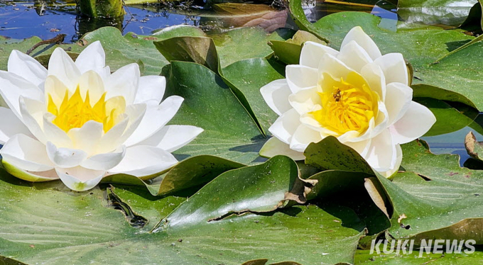 절기상 소만(小滿)을 나흘지난 25일 강원 화천군 하남면 건넌들 수생식물 생태공원에 수련이 만개해 있다.