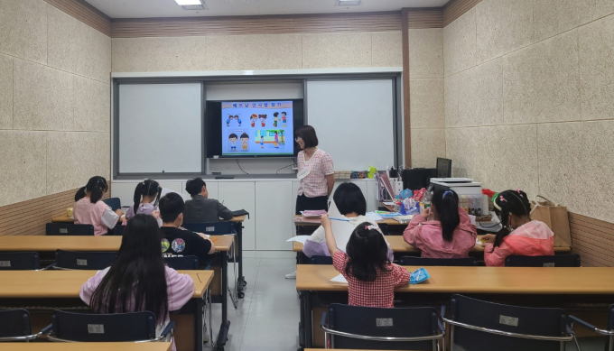 매주 토요일에 진행되는 이중언어교실은 매주 토요일에 진행한다. 8~13세의 다문화 자녀 10명이 한 반으로 구성해 각 나라의 문자체계(알파벳)와 일상생활에서 사용하는 단어와 문장을 학습한다.