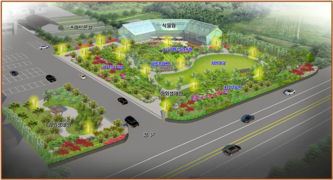 또, 야외에는 계수나무길과 과일생태원, 자생초화원, 자연마당, 복자기나무숲, 소나무동산 등 다채로운 공간과 함께 방문객을 위한 각종 편의시설이 마련된다.
