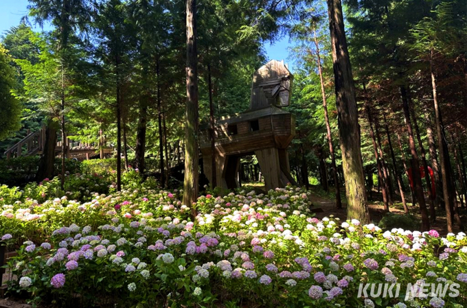 전남 장흥 정남진 편백숲 우드랜드 산책로를 따라 형형색색의 수국이 활짝 피었다. 우드랜드는 관광객에게 새로운 볼거리를 제공하기 위해 수국 꽃길을 조성했다. 사진=장흥군