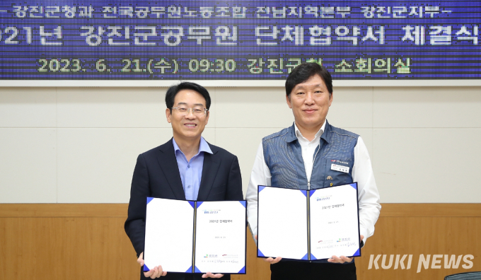 김재명 지부장은 ”단체협약 협상기간 동안 조합원들의 생생한 현장의 목소리와 응원과 지지에 감사드리며, 청렴한 공직사회를 바라는 군민의 요구에 부응하기 위해 노사가 힘을 합해 더 열심히 행정에 임할 것“이라며 ”공직자가 열심히 일할 수 있는 여건 조성에 힘을 실어준 군수님과 강진군의회에 감사드린다”고 말했다.