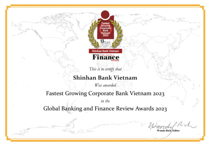 GBAF 평가 위원회는 “전반적으로 어려운 글로벌 경제, 특히 베트남의 수출 경기 둔화에 FDI(외국인 직접 투자) 감소 여건 속에서도 신한베트남은행은 2023년 5월까지 기업대출 40%이상 증가, 현지기업 고객수 약 1만 6천개에 거래비중도 55%를 넘어서는 등 베트남 기업 및 산업에 대한 원활한 자금 공급과 금융지원에 크게 기여했다”며 수상 이유를 설명했다.