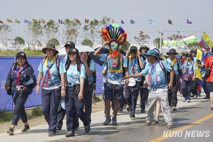 한반도를 향해 북상 중인 태풍 ‘카눈’이 2023 새만금 세계스카우트잼버리 야영장을 지날 것으로 보이자 대원들이 영지를 떠나기로 했다.
