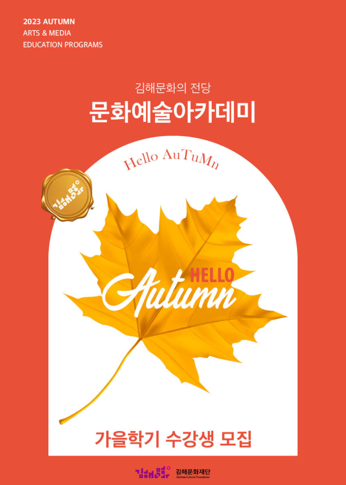 (재)김해문화재단 김해문화의전당 아람배움터가 2023년 문화예술아카데미가을학기 수강생을 18일부터 선착순 모집한다.