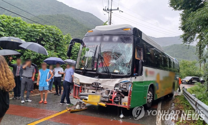 9일 낮 12시 46분께 전남 순천시 서면 운평리 도로에서 잼버리 대원들이 타고 있던 관광버스와 순천 시내버스가 충돌했다.