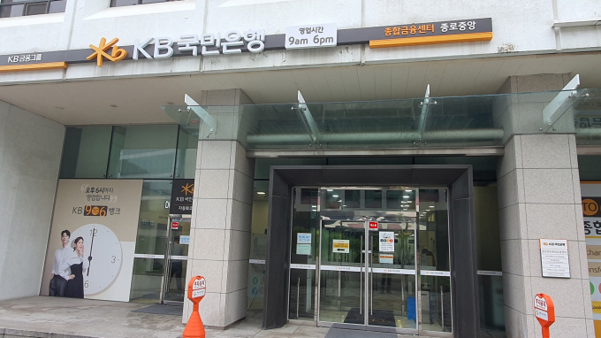태풍 카논의 영향으로 비가 내리던 11일 다른 은행 영업점들이 셔터를 내리고 업무 정산에 한 창인 시간에 국민은행 종로중앙종합금융센터 직원들은 여전히 고객을 맞이했다.