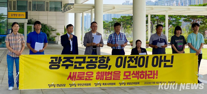 정의당 전남도당은 4일 오전 전남도청 앞에서 기자회견을 열어 “광주군공항 이전 문제가 지방자치단체 간, 지역민 간 대립과 갈등으로 얼룩지고 있다”며 이같이 주장했다.