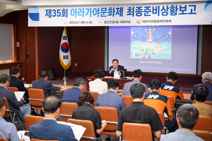 군은 7일 오후 2시 군청 3층 대회의실에서 ‘제35회 아라가야문화제 최종준비상황 보고회’를 개최했다.