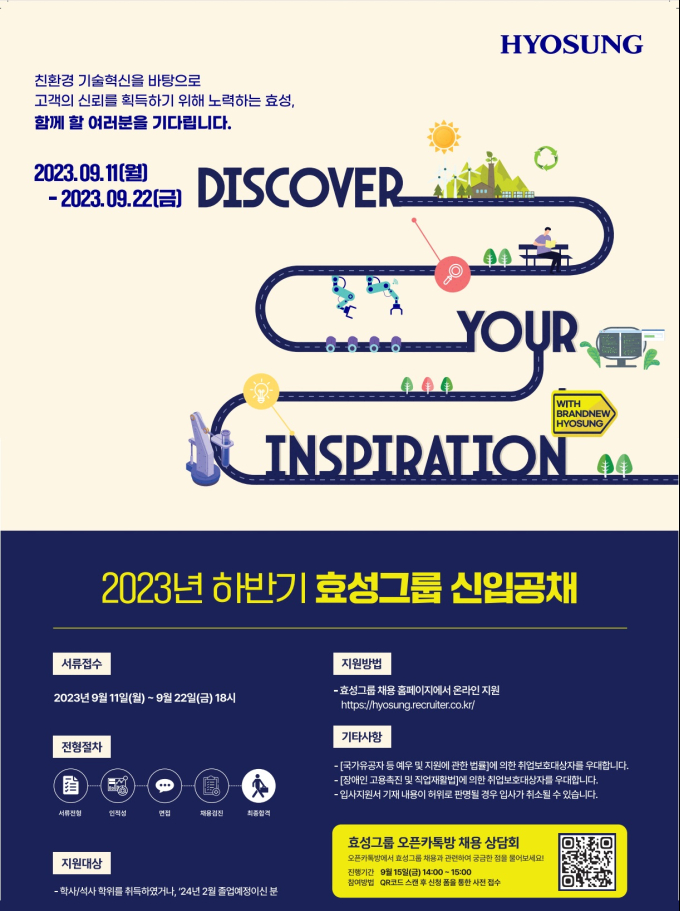 효성그룹이 11일부터 2023년 하반기 대졸 신입사원 공개 채용을 실시한다.