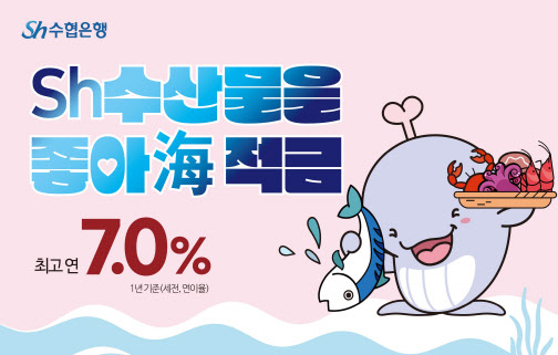 Sh수협은행이 수산물 소비에 따라 최대 연 7% 이자를 주는 ‘Sh 수산물을 좋아해(海) 적금’을 출시했다. 금융권에 수산물 소비 챌린지 전파에 나섰던 수협은행이 이번에는 금리로 수산물 소비 촉진에 나서는 모습이다.