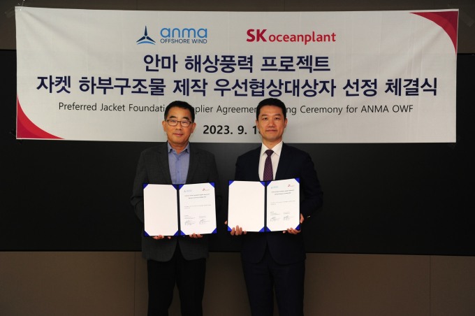 오션플랜트는 안마해상풍력이 개발한 ‘안마 해상풍력 프로젝트’의 하부구조물 제작 사업에 대한 우선협상대상자로 선정됐다고 19일 밝혔다. 오션플랜트는 이번 사업에 14MW급 풍력 터빈과 블레이드 및 타워를 지탱하는 하부구조물 재킷 38기를 제작·공급한다.