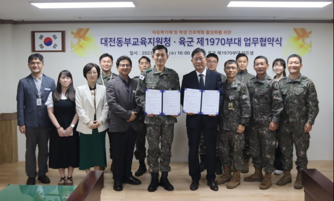 대전동부교육지원청은 20일 오전 10시 육군 제1970부대와 자유학기제 및 진로체험 활성화를 위한 업무협약식을 개최했다고 밝혔다.
