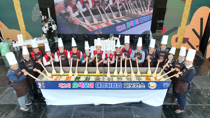 경북 봉화군에서 열리는 ‘제27회 봉화송이한약우축제’가 최근 오색오미 대형 비빔밥 퍼포먼스를 시작으로 화려한 막을 올렸다.