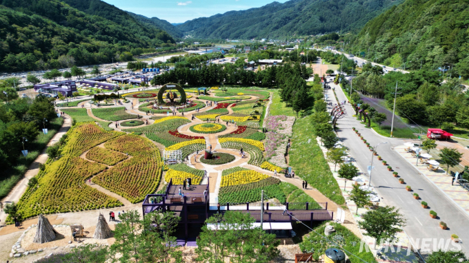 24일 오후 강원 인제군 북면 용대관광지 일대에서 열린 '인제 가을꽃축제'를 찾은 관광객들이 즐거운 시간을 보내고 있다. '인제에서 꽃길만 걷자'를 테마로 지난 22일 개막한 이번 축제는 10월 15일까지 24일간 이어진다.