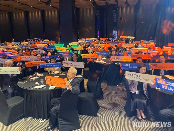 이날 약 380명이 기념식을 찾았다. 42개 테이블에 10명씩 모여 앉아 대화를 나눴다. 이들은 ‘이산가족 우리 모두의 아픔입니다’ ‘아픔과 그리움, 함께 나누고 해결하겠습니다’라고 적힌 슬로건을 들었다.