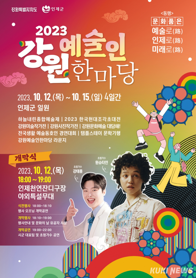 강원특별자치도가 주최하고 인제군이 주관하는 이번 행사는'<동행> 문화 품은 예술로(路), 인제로(路), 미래로(路)'를 주제로 강원 예술인들의 역량을 집결하는 다채로운 프로그램들로 꾸며진다.