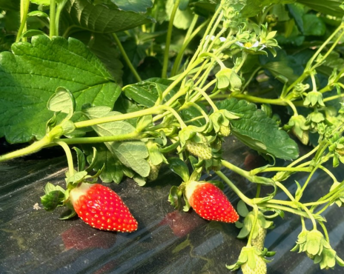또, 주 품종은 국내에서 육성한 설향, 홍희, 미실, 하얀딸기 등 지역적응 신품종을 다양하게 재배하고 있다.