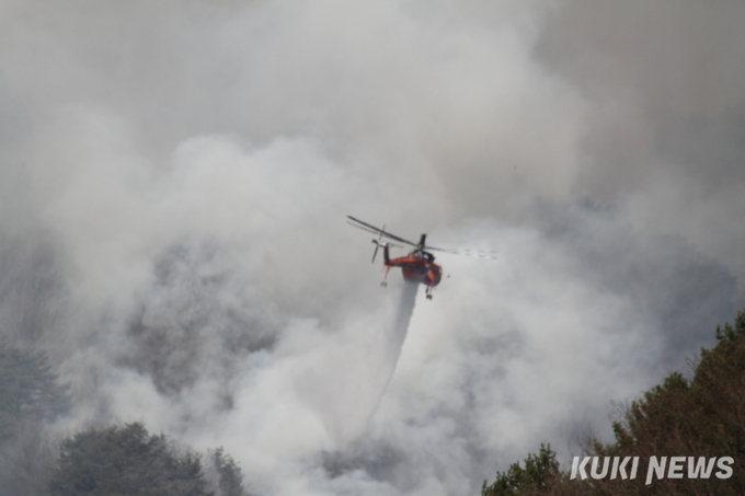 3일 오전 날이 밝자 헬기 6대 등 장비 25대와 223명의 인력을 투입해 이날 오전 9시 진화를 완료했다.